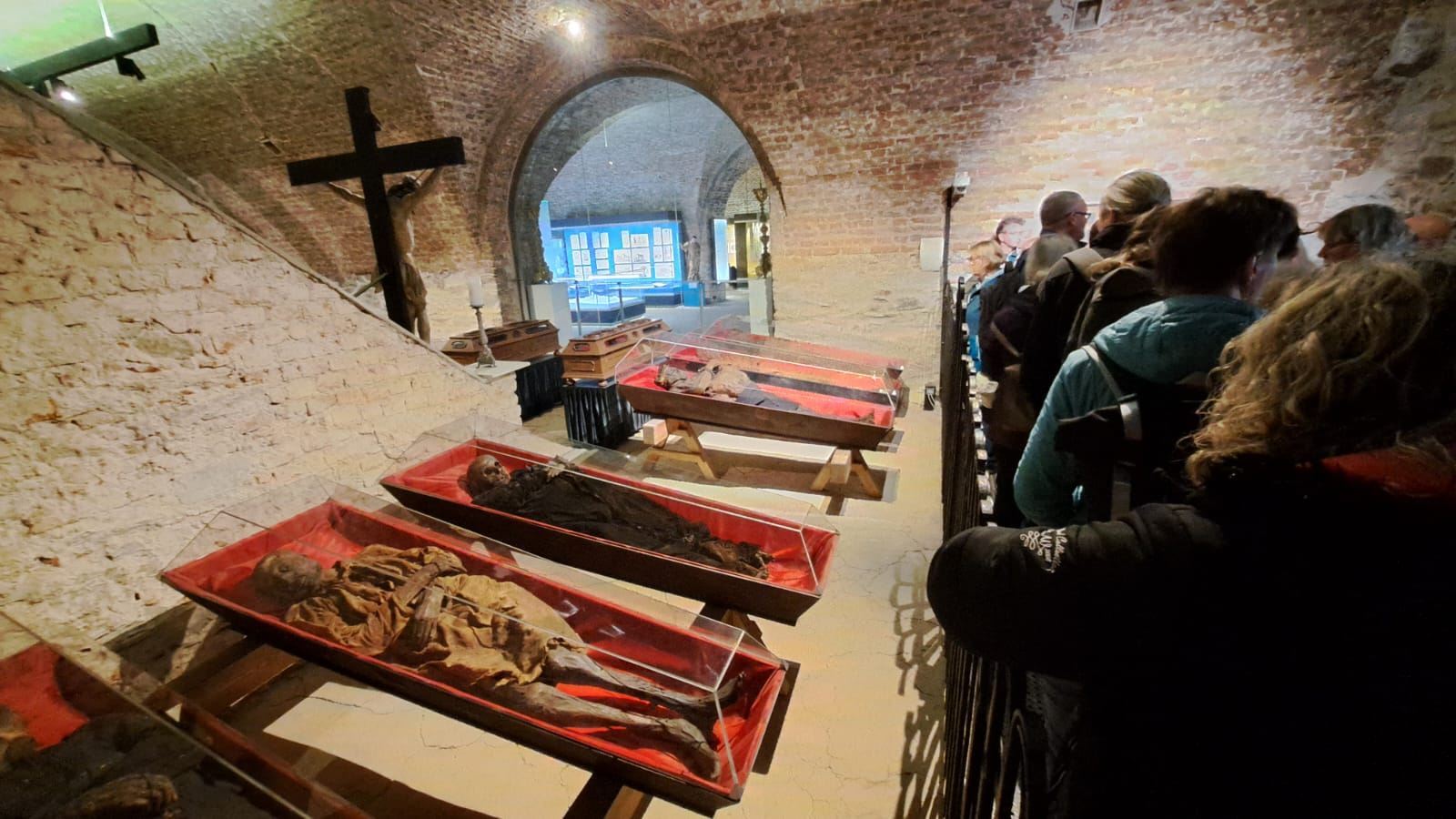 kryptu, kde jsou uloženy mumie jezuitů a jejich příznivců a mecenášů.